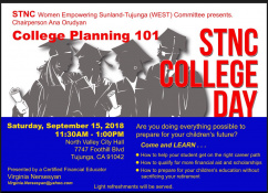 Are you doing everything possible to prepare for your child's future? ?College Planning 101 When: Saturday, September 15, 2018 Time: 11:30am - 1:300pm Location: North Valley City Hall 7747 Foothills Blvd, Tujunga, CA 91042