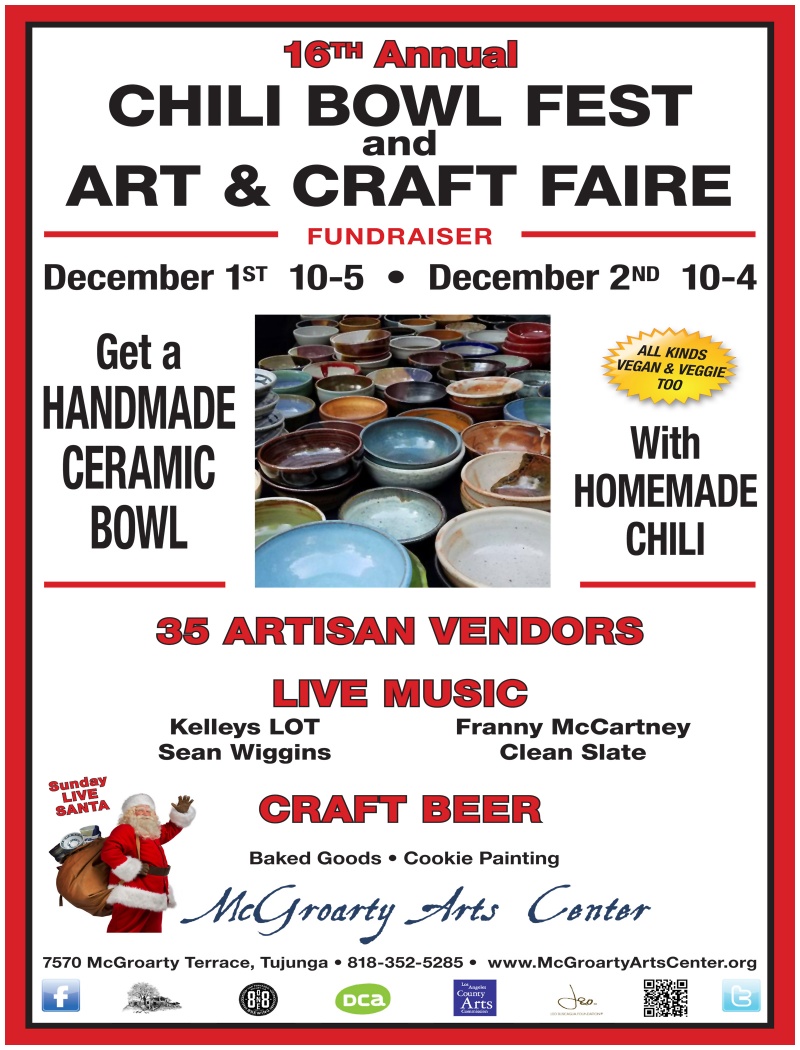 McGroatry Arts Center December 1st 10am - 5pm December 2nd 10am - 4pm Get a Handmade Ceramic Bowl with Homemade Chili 35 Artisan Vendors Live Music And Sunday LIVE SANTA
