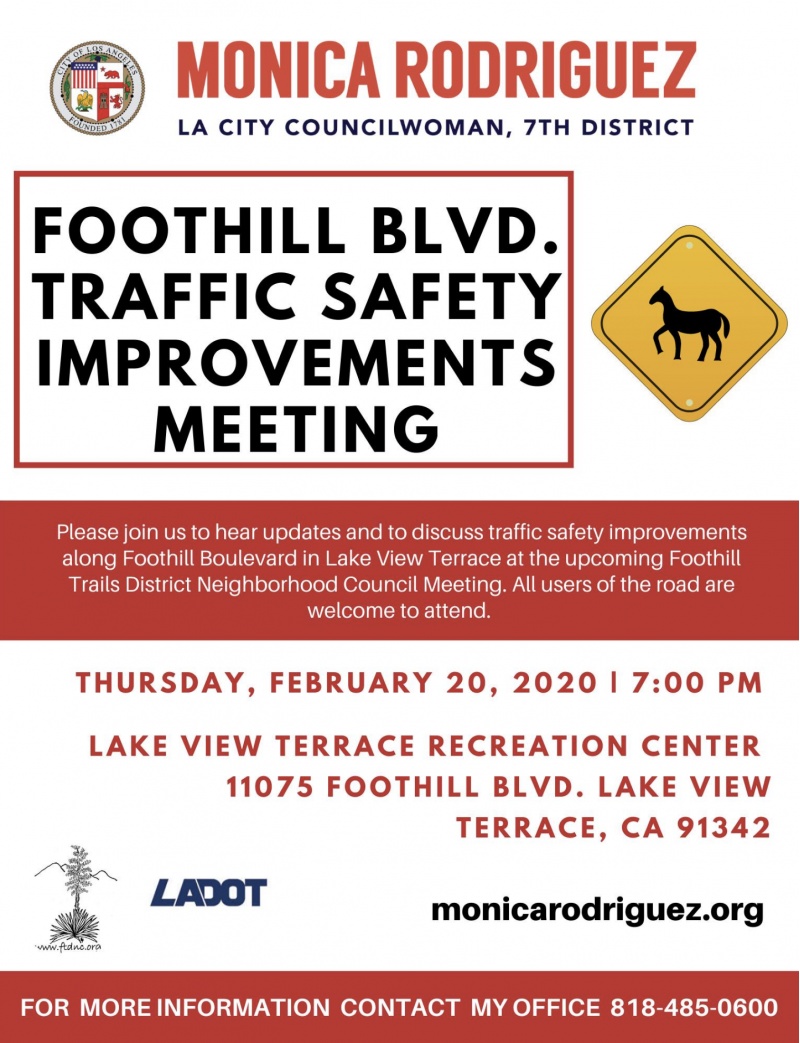 Lake View Terrace Recreation Center 11075 Foothill Blvd, Lake View Terrace Hosted by the office of Councilwoman Monica Rodriguez